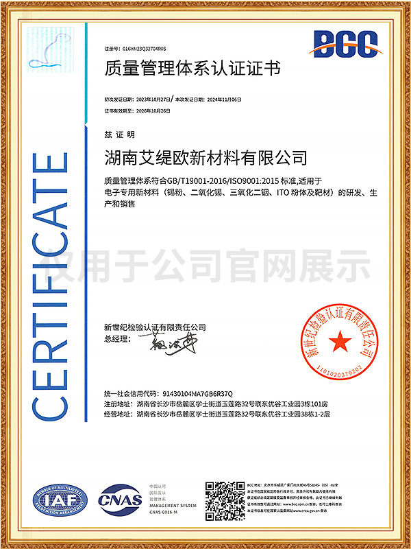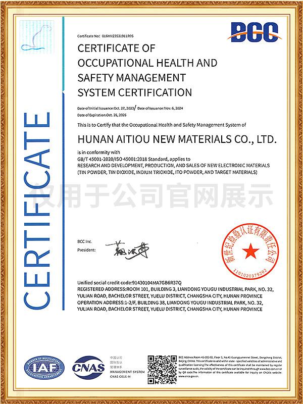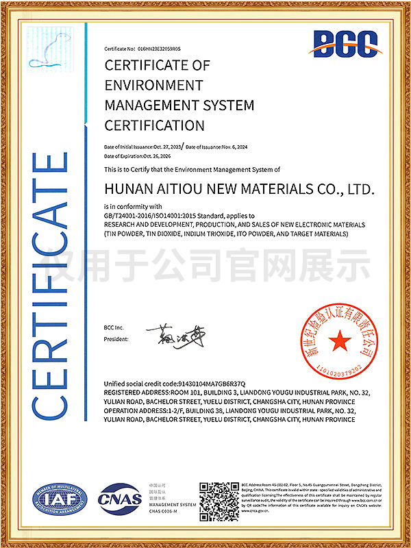 服务优势 —— 公司可为客户提供定制化产品解决方案,精准匹配靶材、电极、玻璃、陶瓷、能源等领域的多样化需求。 公司已通过ISO9001质量管理体系、ISO14001环境管理体系及ISO45001职业健康安全管理体系认证。